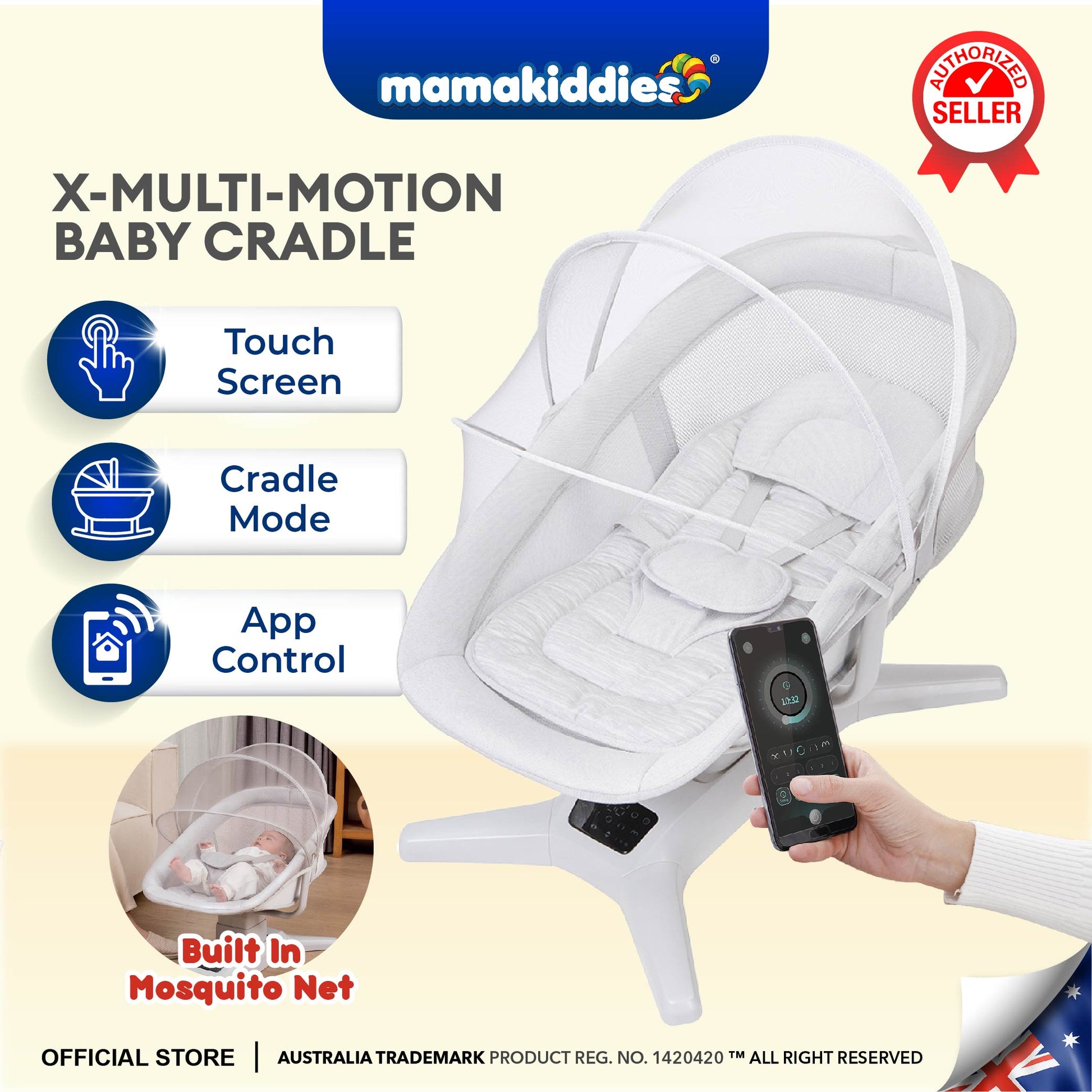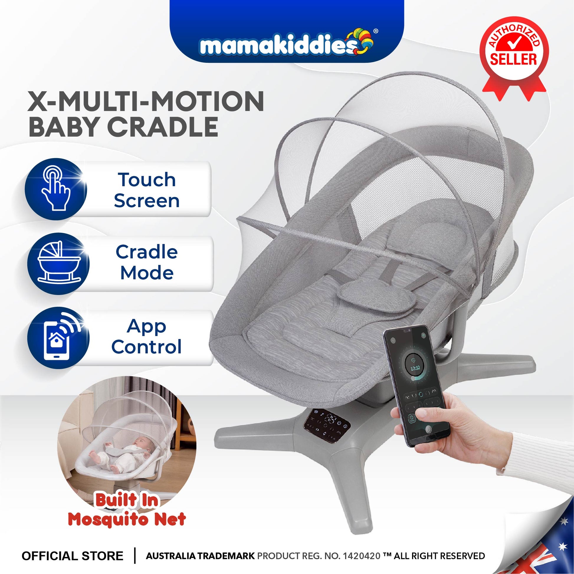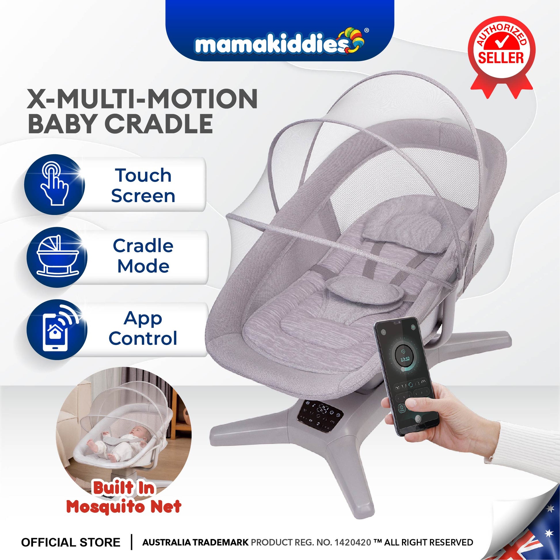 Easily adjust settings with the intuitive touch control panel or conveniently operate the cradle using your smartphone via a dedicated app.