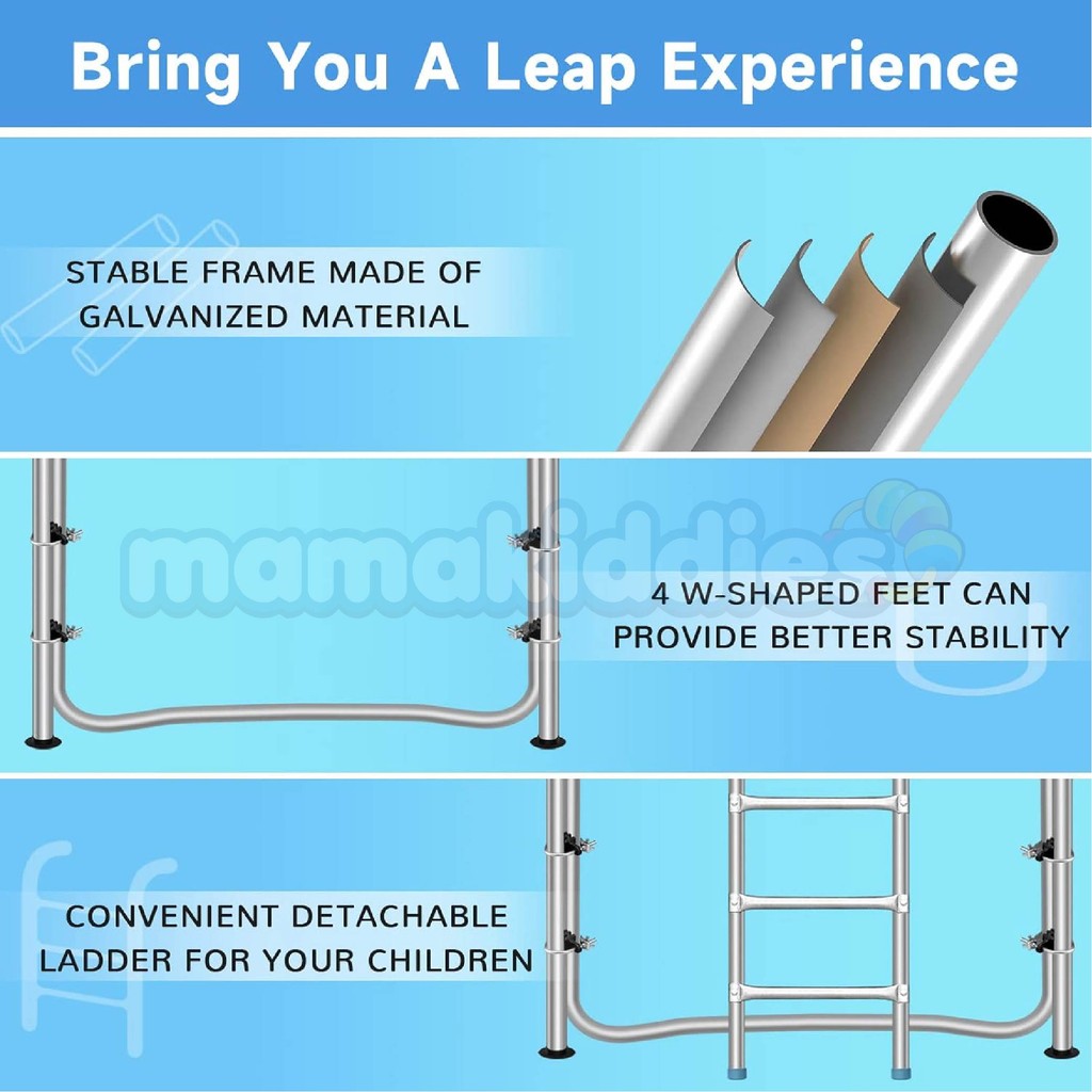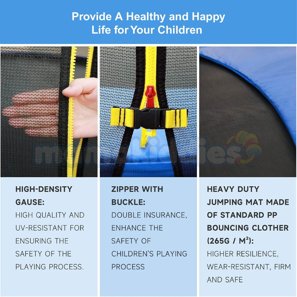 ✅ Zippered Safety Enclosure: The easy-access zipper ensures that users can safely enter and exit the trampoline.